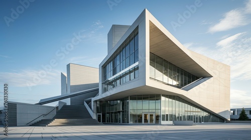 Fototapeta premium brick exterior church building illustration stained glass, arches facade, entrance columns brick exterior church building