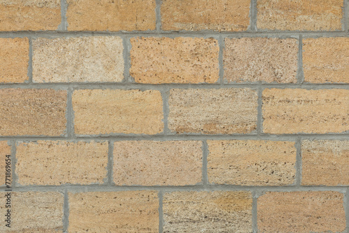 © Andrey, Naklejka premium Brick Nature Blocks Wall Natural Sand Shell Texture Background Limestone Masonry