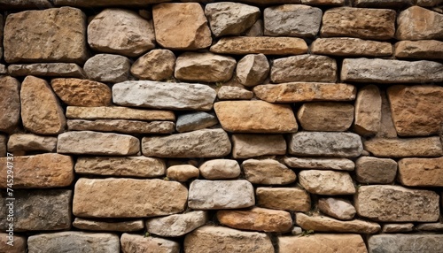 © SANTANU PATRA, Obraz premium Brick stacked stone wall background horizontal pattern