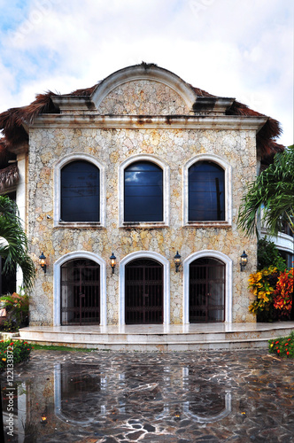 © Евгений Кожевников, Fototapeta premium brick two-story building in the tropics