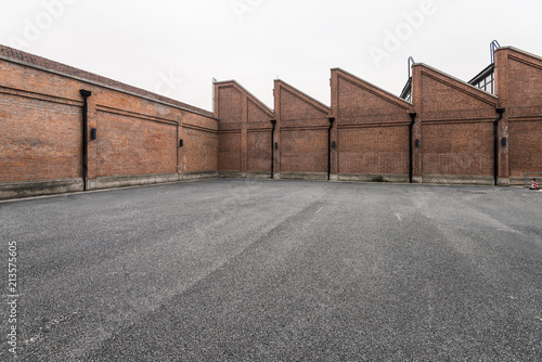 © Bob, Fototapeta premium Brick wall and asphalt parking space