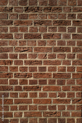 © Korneliia, Fototapeta premium Brick wall background. Stone cladding. Clinker brickwall background. Brickwork backdrop for design. Rough brick wall.