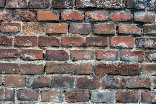 © dmf87, Obraz premium Brick wall dirty grunge texture. Pattern of red solid distressed brickwall