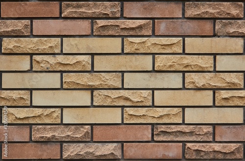 © Станіслав Шаповал, Obraz premium Brick wall of multi-colored bricks