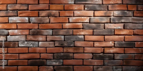 © Cheng, Obraz premium Brick wall of red color, wide. Masonry background. Wall template. Generative AI.