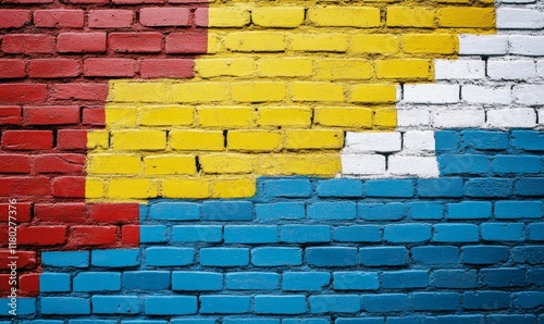 © Valentyna, Naklejka premium brick wall painted on different colour wall