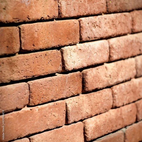 © Azazello, Obraz premium Brick wall texture under the strong sunlight. Brick wall background.