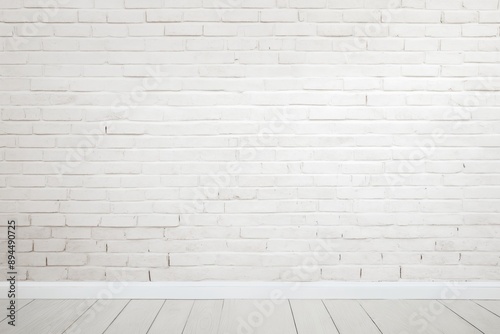 © soleg, Fototapeta premium brick wall white color and wooden plank floor for background or texture