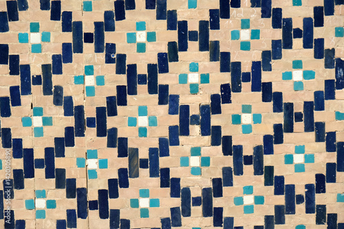 © Natalia, Fototapeta premium brick wall with blue ceramic tiles