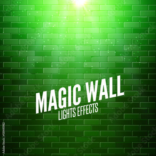 Fototapeta premium Brick wall with lights. Colorful light shining on a wall. Vector poster design