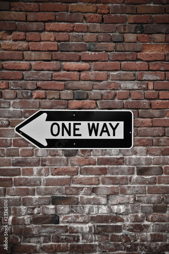 Obraz premium Brick Wall with One Way Sign