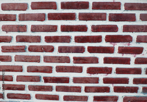 © Nadet, Obraz premium Brick wall with red brick, red brick background.