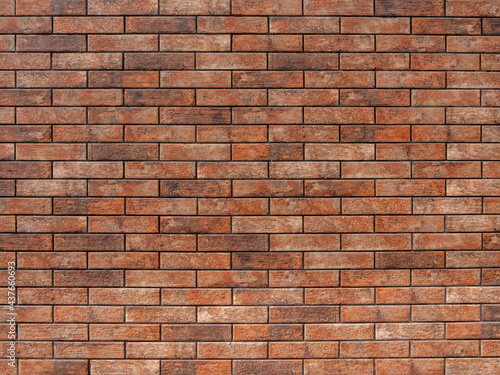 © Konstantin divelook, Obraz premium Brick wall with red bricks. Background.