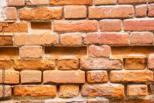 Fototapeta premium Brick wall with uneven masonry. Orange brick