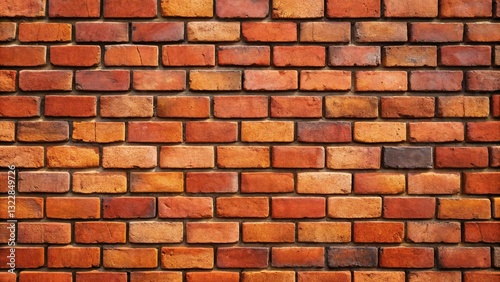 © Phunthip, Obraz premium Brick wall with varying shades of orange and red.