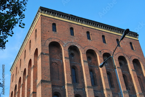 Obraz premium brick water tower, historic building, Na Grobli Street, Wrocław, Poland