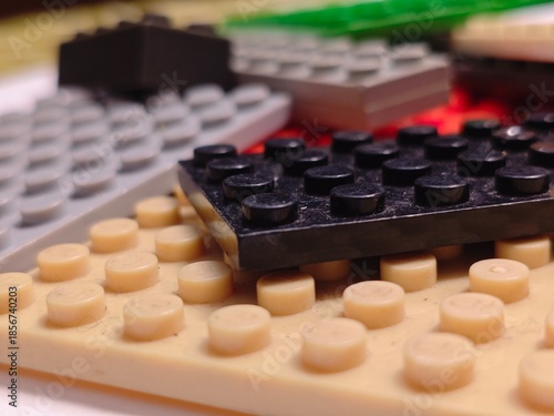 Fototapeta premium Bricks Closeup with Black and Beige Blocks.