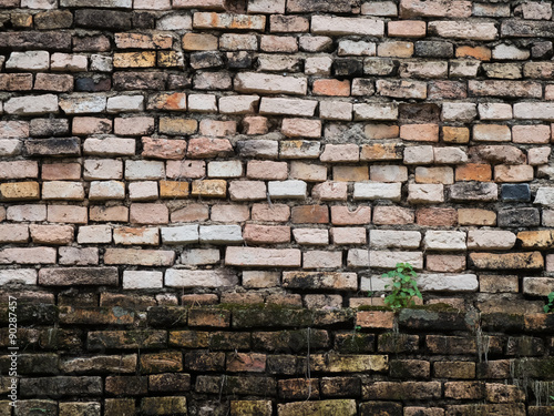 © KOTL, Obraz premium Bricks wall texture background with green lichen closeup