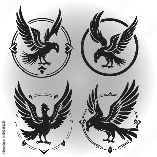 © RabeyaAkter, Fototapeta premium Brid four silhouette style logo and tattoo illustration designs