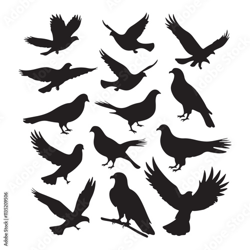 © logodesign11, Obraz premium brid silhouette Pigeons Flying Silhouettes 6 Raven Silhouette