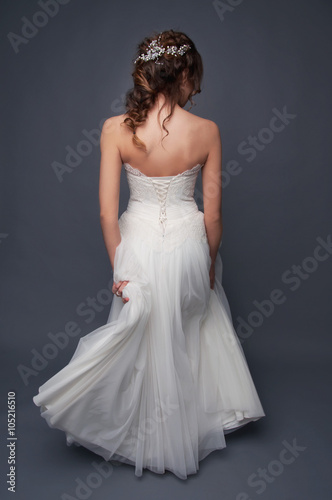 © different_nata, Fototapeta premium Bridal fashion. Brunette bride view from the back.
