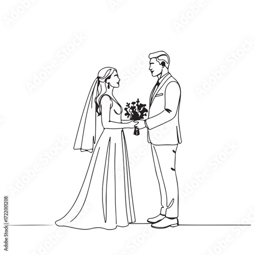 © Asif, Fototapeta premium Bride and Groom Minimal Line Drawing