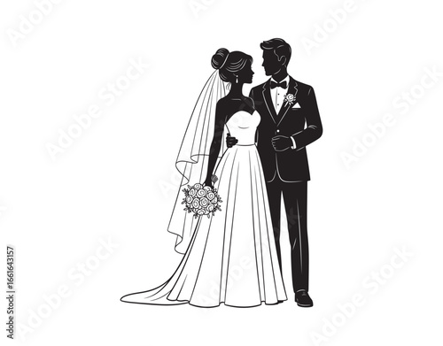Fototapeta premium Bride and Groom. Vector Silhouettes of Couples for Wedding Invites