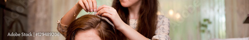 © yakimenkoanton, Fototapeta premium Bride and wedding dress