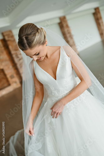 © Jonathan Borba, Fototapeta premium Bride day and bouquet flowers