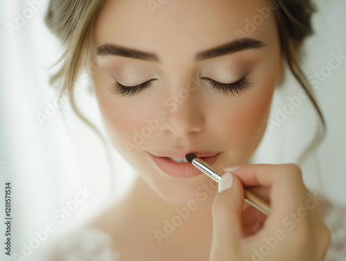 Fototapeta premium Bride getting natural makeup applied on wedding day