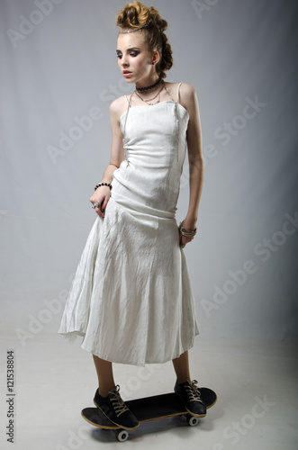 © vladimirvu, Fototapeta premium bride on a skateboard