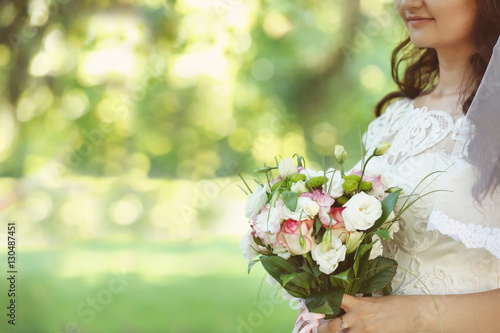 Fototapeta premium Bride with flower bouquet on her wedding day