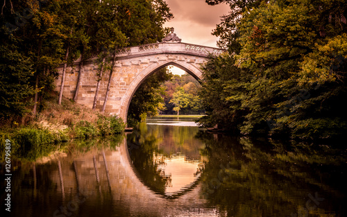 © madison500, Fototapeta premium Bridge above the lake, sunset time