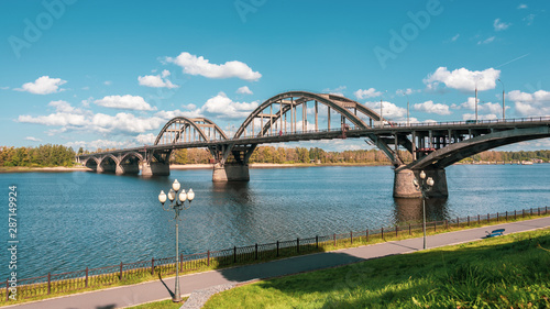 © Andrey Nikitin, Naklejka premium Bridge across the Volga river in town of Rybinsk, Russia
