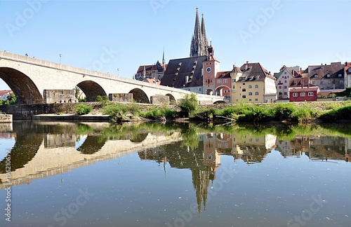 Obraz premium bridge and city Regensburg, Germany, Europe