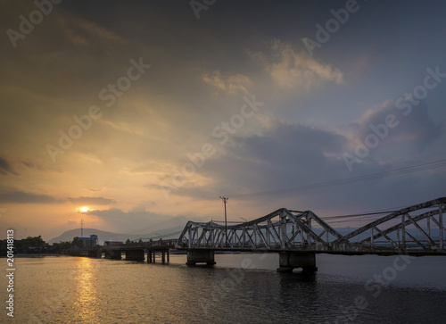Fototapeta premium bridge and river at sunset in kampot cambodia