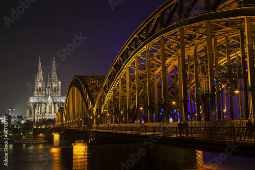 © jurajkovac, Fototapeta premium Bridge and the Dom of Cologne at night. Cologne, Germany