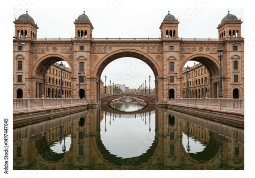 © Sarwar, Obraz premium Bridge architecture canal reflection isolated on white background