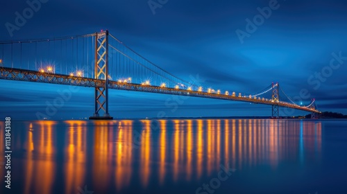© Gajah, Obraz premium Bridge at Night with Reflections
