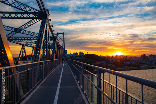 Obraz premium bridge at sunset Florianopolis, Ponte Hercílio Luz, Florianópolis, Santa...