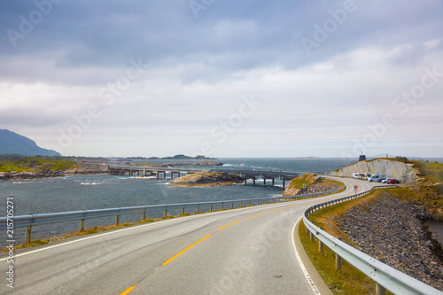 Fototapeta premium Bridge (Atlanterhavsvegen) with an amazing view over the norwegian mountains, Atlantic road, Norway