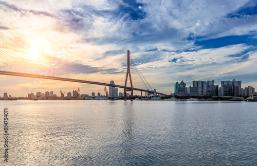 © zhao dongfang, Fototapeta premium Bridge buildings and river in modern city of Shanghai