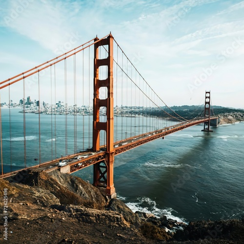 © gassh, Fototapeta premium Bridge city concept modern city over river