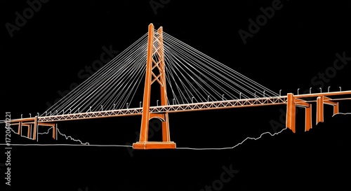Fototapeta premium Bridge Construction Action, Engineering Marvel, Urban Landscape, Illustration
