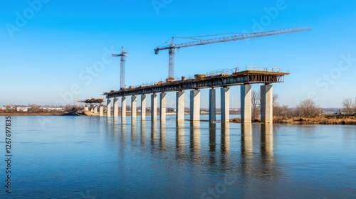 Obraz premium Bridge Construction over River under Blue Sky