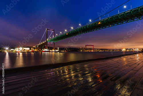 © Mikael, Obraz premium Bridge Crossing River in Nighttime