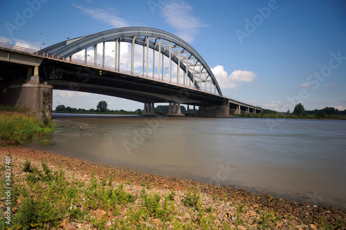 © Johannes Zoetekouw, Obraz premium Bridge crossing river Lek