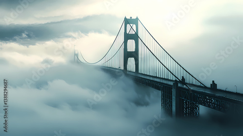 © Thiago, Obraz premium Bridge disappearing into fog. Unseen Vanishing. Illustration