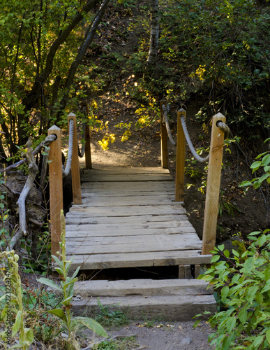Obraz premium bridge,footbridge,path,rustic,rope,secluded,trees,planks