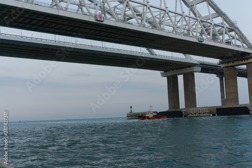 Fototapeta premium Bridge from mainland russia to the crimean peninsula, the bridge can be used by car and train and can be passed at the chain bridge part